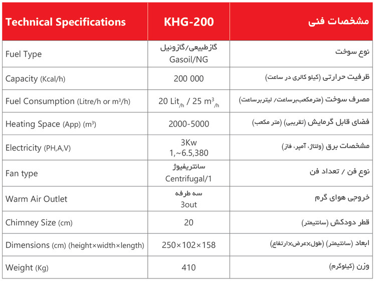 کوره هوای گرم 200هزار فن سانتریفیوژ مدل KHG200 برند نیرو تهویه البرز رنگ استیل