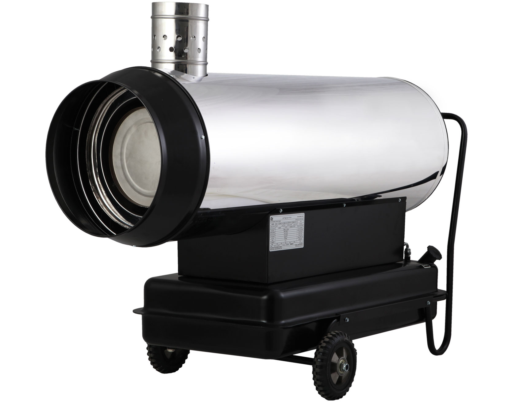 کوره هوای گرم پرتابل 60هزار گازوئیلی باکدار مدل QELB110 برند نیرو تهویه البرز جنس استیل