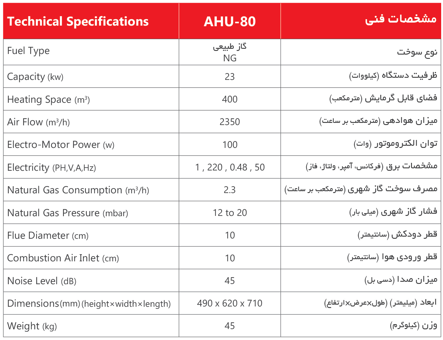 هیتر گازی فن دار 80 هزار مدل AHU80 برند نیرو تهویه البرز جنس استیل