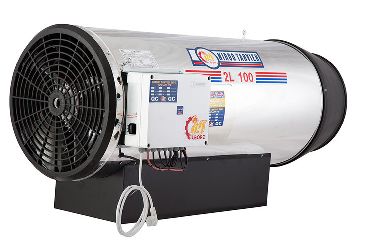 جت هیتر دوموتوره گازوئیلی البرز مدل 2L-100، با توان حرارتی 100 هزار کیلو بر ساعت از سری هیترهای دوموتوره بوده که جهت مصارف صنعتی و غیر صنعتی همچون مرغداریها و سالنهای بزرگ کاربرد دارد. سوخت مصرفی دستگاه گازوئیل بوده و وجود موتور دوم در دستگاه جهت استفاده در محلهایی است که نیازمند وجود هوای سالم و تازه هستند، مکش هوای سالم از فضای بیرون توسط موتور دوم از قابلیتهای دستگاه نامبرده است.